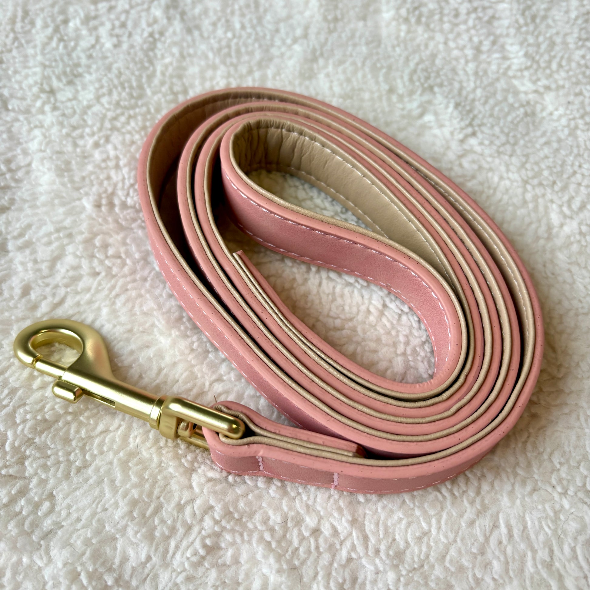 ✨Coffret personnalisé pour chien – Collier simili cuir rose avec médaillon gravé + laisse + patère gravée à la main – Cadeau chic prêt à offrir ✨