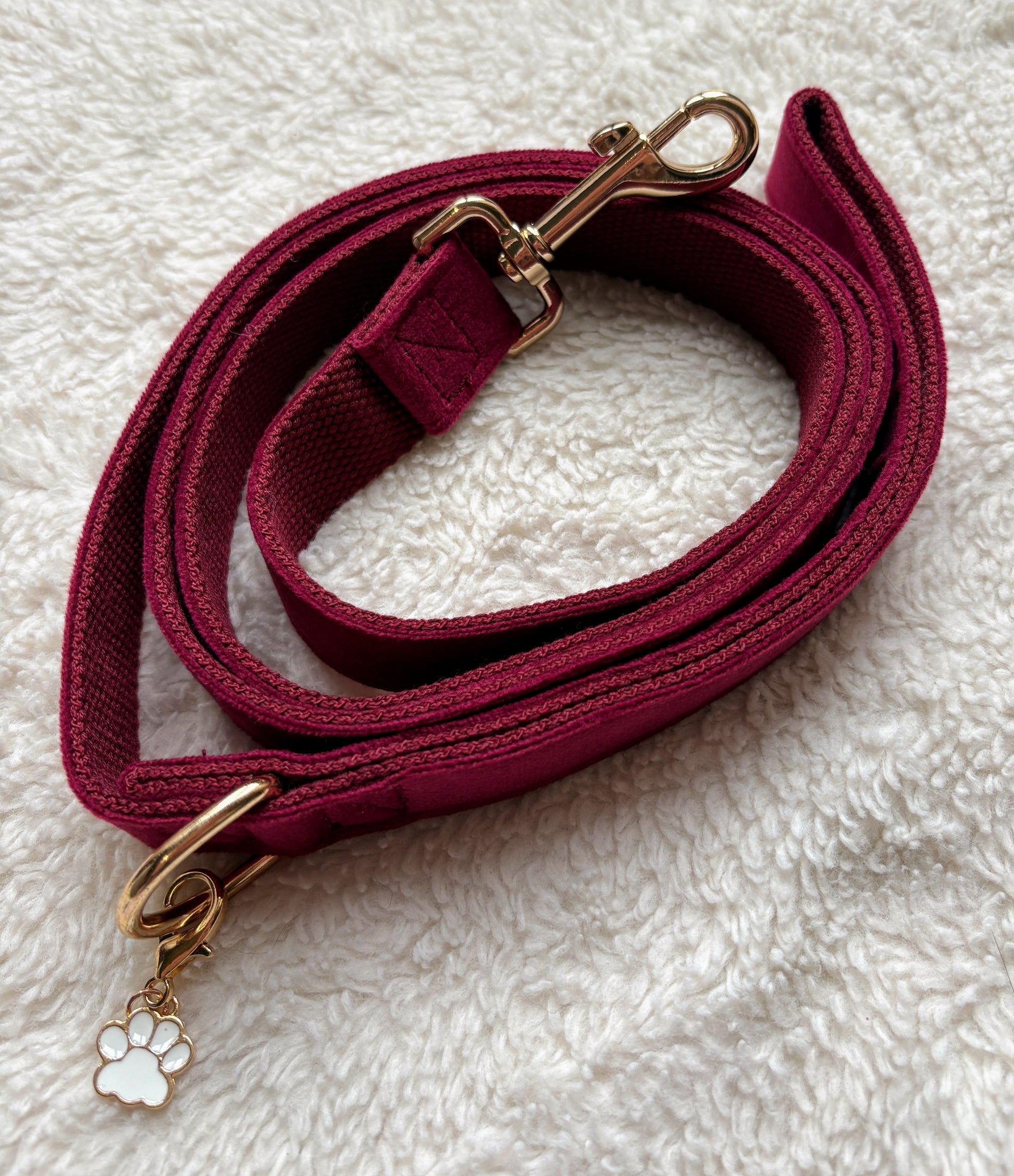 ✨Coffret personnalisé pour chien – Collier velours bordeaux avec fleur et médaillon gravé + laisse bijou + patère gravée à la main – Cadeau chic prêt à offrir ✨